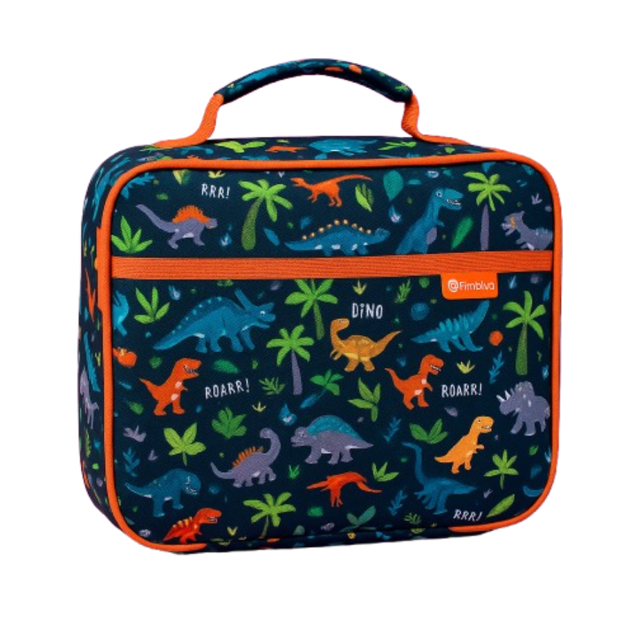 Colorful, dinosaur-themed lunch bag for kids, perfect for kids, Durable, insulated, and easy to clean.